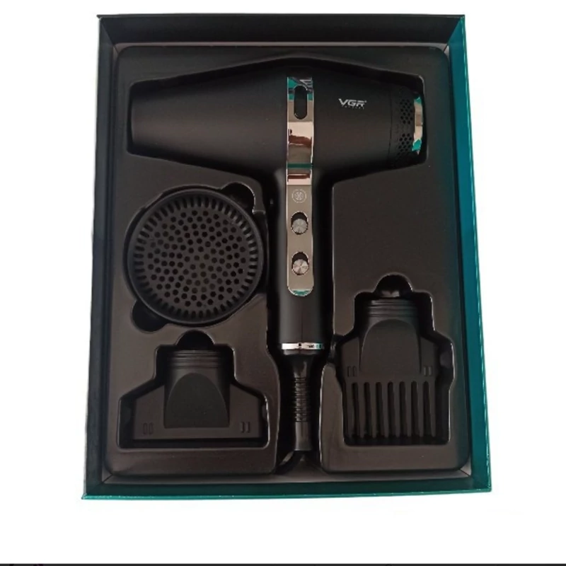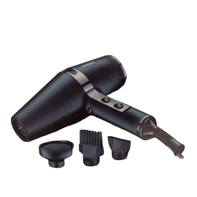 سشوار حرفه ای VGR V-451 2200W آسان و خنک، سشوار رویاهای شما سشوار VGR V-451 حرفه ای ترکیبی عالی از سبک و تکنولوژی است. موتور AC قدرتمند و جریان هوای سریعتر به شما کمک میکند تا در کمترین زمان، مدلهای موی فوقالعاده صاف، بدون وز و مد روز داشته باشید. دارای 3 تنظیم گرما و 2 سرعت و یک دکمه شات خنک است که هوای سرد را پخش می کند که سبک شما را تنظیم می کند. این خشک کن دارای سه اتصال نازل جداشونده 1. متمرکز کننده، 2. پخش کننده، 3. نازل شانه ای است.
