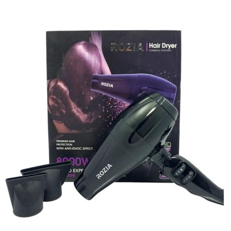 سشوارها در کل دارای دو نوع موتور سنگین و موتور سبک هستند که نوع موتور سبک یا DC توان و قدرت کمتری دارند و برای جاهایی که نیاز به روشن ماندن کمتری دارد مثل استفاده شخصی در خانه و مسافرت مناسب اند، نوع موتور سنگین یا AC نیز از قدرت و توان بالاتری برخوردار اند و به دلیل بهره گیری از موتور AC قابلیت استفاده در طولانی مدت را دارد و برای مدت زمان بیشتری می توانند روشن بمانند بنابراین برای سالنهای آرایشی و آرایشگاه ها مناسب هستند. انتخاب سشوار بسته به نوع استفاده کاربر فرق می کند بنابراین برندهایی همچون روزیا مدلهای مختلفی از سشوار را تولید و عرضه می کنند تا کاربر بنا به خواسته خود و نوع استفاده آن را انتخاب و خریداری نماید. سشوار روزیا HC8308 از جمله سشوارهای قدرتمند و موتور سنگین روزیا است که مجهز به موتور سنگین AC و دارای توان مصرفی 8000 وات می باشد و باد را با توان و قدرت بالایی پرتاب می کند. این سشوار دارای 3 حالت تنظیم دما و 2 حالت تنظیم سرعت باد است و همچنین قادر به پخش باد سرد نیز می باشد که در حالت دهی بهتر موها تاثیر گذار است و برای تثبیت و حالت دهی بهتر می توانید از آن استفاده کنید. علاوه براین برای حالت بهتر می توانید از متمرکزکننده هایی که همراه محصول ارائه می شوند استفاده کنید. HC8308 به فناوری تولید یون نیز مجهز است که با تولید یونهای منفی موها را سریع تر خشک می کند و همچنین حالت وز و شکستگی مو را از بین می برد و همچنین باعث درخشندگی بیشتر آن می شود. طراحی ارگونومیک و کارایی آسان از دیگر ویژگی های سشوار روزیا HC8308 است که با بدنه ای سبک و طراحی خوش دستی که دارد کارایی آسانی را ارائه می دهد و می توانید به صورت حرفه ای از آن استفاده کنید.