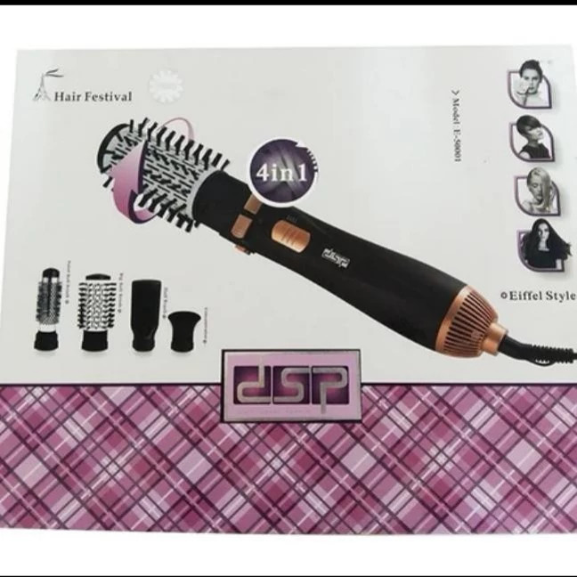 مشکل بسیاری از خانم ها در حین سشوار کشیدن موهای خود ، نگه داشتن همزمان برس و سشوار در دست است که معمولا برای این کار نیازمند کمک می باشند ، به همین خاطر این محصول از کمپانی خوش نام dsp می تواند این مشکل را حل نماید. سشوار چرخشی dsp مدل E_50001 با دارا بودن چهار سری مختلف قابل تعویض کمک می کند تا موهای شما صاف و یا حالت دار گردند. امتیاز بعدی داشتن سری چرخشی در 2 سایز مختلف می باشد که با توجه به حجم مو ، می توان سایز مورد نظرتون را انتخاب کرده و به راحتی و حتی با یک دست موهای خود را حالت دار و یا صاف کنید و در میهمانی بدرخشید.از ویژگی های دیگر این محصول هم می توان به سیم چرخشی 360 درجه ، امکان چرخش برس در 2 جهت مختلف ، طراحی ارگونومیک و تنظیم دما اشاره کرد.ویژگی بعدی، پکیجینگ کادویی این محصول می باشد که علاوه بر استفاده شخصی ، می تواند انتخابی مناسب برای هدیه به عزیزانتون هم باشد.سشوار های چرخشی نسل جدید از سشوارها هستند ، که علاوه بر قابلیت تولید باد گرم میتوانند با استفاده از برس های که قابلیت تعویض و چرخش دارند و در یک جهت به دلخواه کاربر حرکت میکنند ، علاوه بر خشک نمودن مو به آن حالت دهند .
