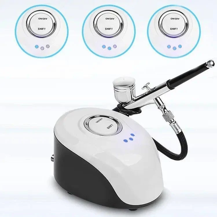 پمپ ایربراش BT-19 ساخت کشور چین دارای سنسور روشن و خاموش اتوماتیک ظاهری زیبا و با طراحی چشم نواز توانایی تولید هوای فشرده با فشار 30 PSI 12 لیتر در دقیقه جریان خروجی باد قابلیت تنظیم جریان باد خروجی در سه سطح مختلف فشار باد استاندارد بدون رطوبت و روغن کثیف بسیار کم صدا و کم لرزش قابل استفاده برای انواع رنگ کاری ها با قلم ایربراش دارای تجهیزات جانبی نظیر قلم ایربراش، شلنگ و پایه