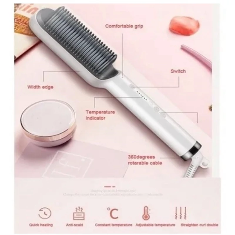 برس حرارتی حالت دهنده مو مدل hqt-909b مشخصات حداکثر دما 200 طول سیم 1.5 متر نوع نمایشگر LED جنس صفحات سرامیک گسترهی دما بیش از 240 درجه سانتیگراد نوع صفحات باریک متوسط پهن 110 میلیمتر خرید اینترنتی برس حرارتی حالت دهنده مو مدل hqt-909b برس مخصوص حالت دهی موی سر مناسب استفاده برای سالنهای آرایشی و خانگی و … برس حرارتی جدید برقی با صفحه های سرامیکی درجه یک گستره ی دمای بیش از 240 درجه سانتی گراد قابلیت تنظیم دمای دلخواه دارای صفحه نمایشگر led دارای سیستم ایمنی قفل دما کارکرد برقی با کابل 1.5 متری بهترین مارک برس حرارتی برس حرارتی مخصوص حالت دهی مو یک ابزار جدید و کاربردی در زمینه آرایش و پیرایش موهای سر می باشد که کاربرد فوق العاده ای در حالت دادن انواع موهای صاف،فر،خشک و … داشته و می تواند یک دستیار حرفه ای برای آرایشگر ها نیز باشد. اگر دوست دارید بدون دردسر و بدون نگرانی از خراب شدن موهایتان آنها را در حالتی صاف و درخشان و زیبا آرایش کنید نیازی به اتوی مو،سشوار و … نخواهید داشت و فقط با استفاده از همین برس حرارتی بهترین حالت دلخواهتان را براحتی آب خوردن ایجاد کنید. برس حرارتی حالت دهنده مو مدل hqt-909b جدیدترین و با کیفیت ترین مدل از برس های مخصوص حالت دهنده موی سر می باشد که با استفاده از آن دیگر هیچ نیازی به سشوار و یا اتوی مو نخواهید داشت و تنها با همین برس موهای خود را در حالت دلخواه خواهید توانست آرایش کنید. این برس حرارتی یک برس در طرح و مدل همان برس های معمولی می باشد اما صفحه های باریک سرامیکی دارد که با استفاده از نیروی برق شهری می تواند حرارت تولید کرده و موهای شما در حالت دلخواهتان درست کند، میزان دما و حرارت این برس قابلیت تنظیم داشته و به کمک صفحه نمایشگر ال ای دی این محصول می توانید براحتی آن را در دما و حرارت مناسب تنظیم کرده و استفاده کنید و لازم نیست نگران ایمنی و یا سوختن و خراب شدن موهایتان باشید زیرا این برس کاملا ایمن طراحی شده و دکمه قفل دما نیز دارد و براحتی با استفاده از یک دکمه پاور نیز در کسری از ثانیه امکان خاموش و یا روشن شدن نیز دارد. برس حرارتی hair straightener برس حرارتی جدید برقی با صفحه های سرامیکی درجه یک گستره ی دمای بیش از 240 درجه سانتی گراد قابلیت تنظیم دمای دلخواه دارای صفحه نمایشگر led دارای سیستم ایمنی قفل دما کارکرد برقی با کابل 1.5 متری