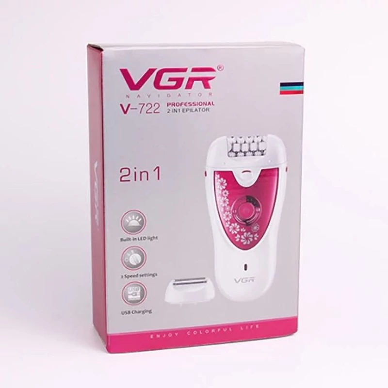 داشتن یک اپیلاتور که بتواند موهای بدن را با سرعت زیاد از ریشه جدا کند میتواند مورد علاقه بسیاری از خانمها قرار گیرد. دستگاه اپیلاتورV-722 که توسط شرکت وی جی ار تولید شده است میتواند با یک بار قرار گرفتن آن روی پوست تعداد زیادی از موها را از ریشه جدا کند. برای این اپیلاتور تنها باتری قابل شارژ به عنوان منبع تغذیه در نظر گرفته شده است. علاوهبر سری اپیلاتور، سری کوچک برای جدا کردن موهای مربوط به مناطق محدود وجود دارد که نیاز فرد را از خرید دستگاهی جداگانه برای اصلاح این مناطق بر طرف کرده است. از آنجاییکه این مدل قابلیت شارژ شدن را دارد میتوان از آن پس از 8ساعت شارژ کامل به مدت 35 دقیقه استفاده کرد.همچنین قابلیت تنظیم سرعت در دو سرعت کم و زیاد میباشد. با استفاده از برس تمیز کننده که برای این اپیلاتور به عنوان اقلام همراه در نظر گرفته شده میتوان دستگاه را پس از اصلاح بهراحتی تمیز کرد. توان این اپیلاتور 5 وات و ولتاژ آن 100-240 ولت است.