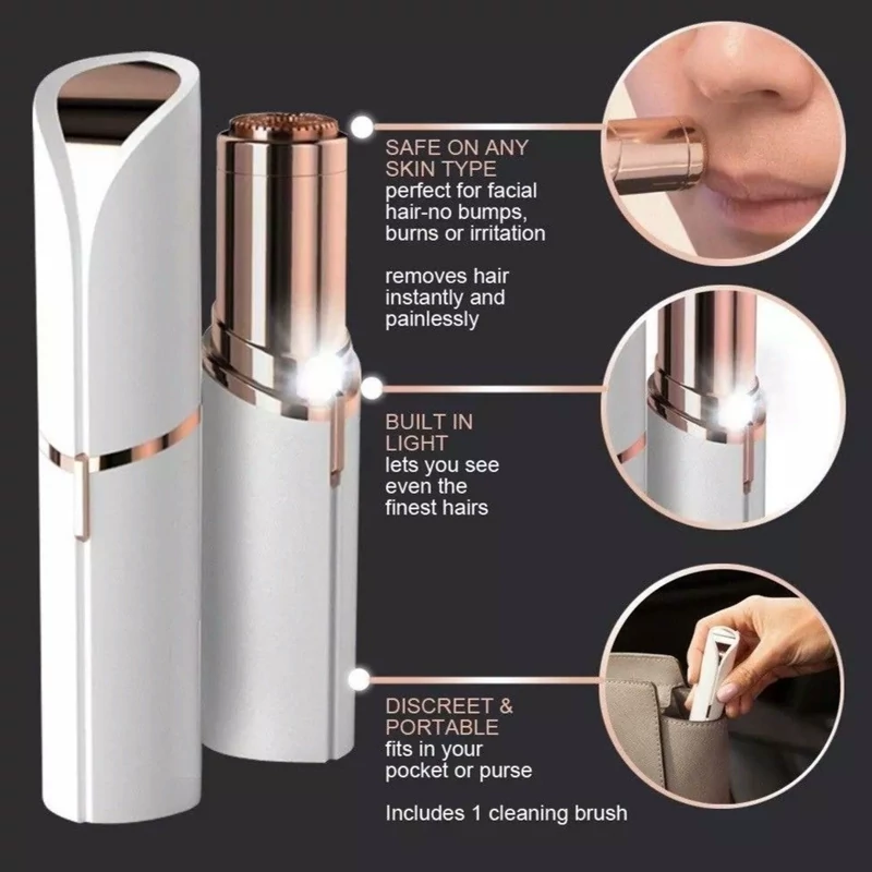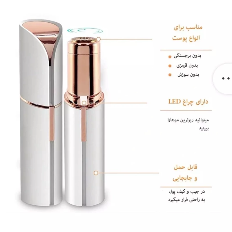 ماشین یا دستگاه اصلاح صورت لمسی فلالس Flawless Facial Hair Remover نمونه شارژی یکی از لوازم آرایش و زیبایی بانوان بوده که در ابعاد جیبی بسیار کوچک به طرح ماتیکی بوده و می توان آن را در کیف آرایشی خودتان همیشه به همراه داشته باشید و هیچ وقت نگران موهای زائد صورت و بعضی از نقاط بدن نباشید ، کار با آن بسیار آسان بوده و هیچ دردی ندارد و باید توجه کنید این محصول موزن می باشد نه موکن و بنابراین شما هیچ دردی را احساس نخواهید کرد